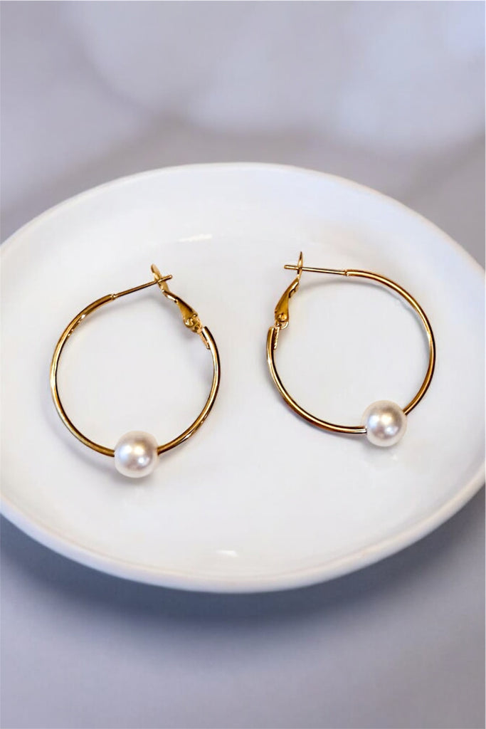 Leverback Hoops with Faux Pearls Earrings