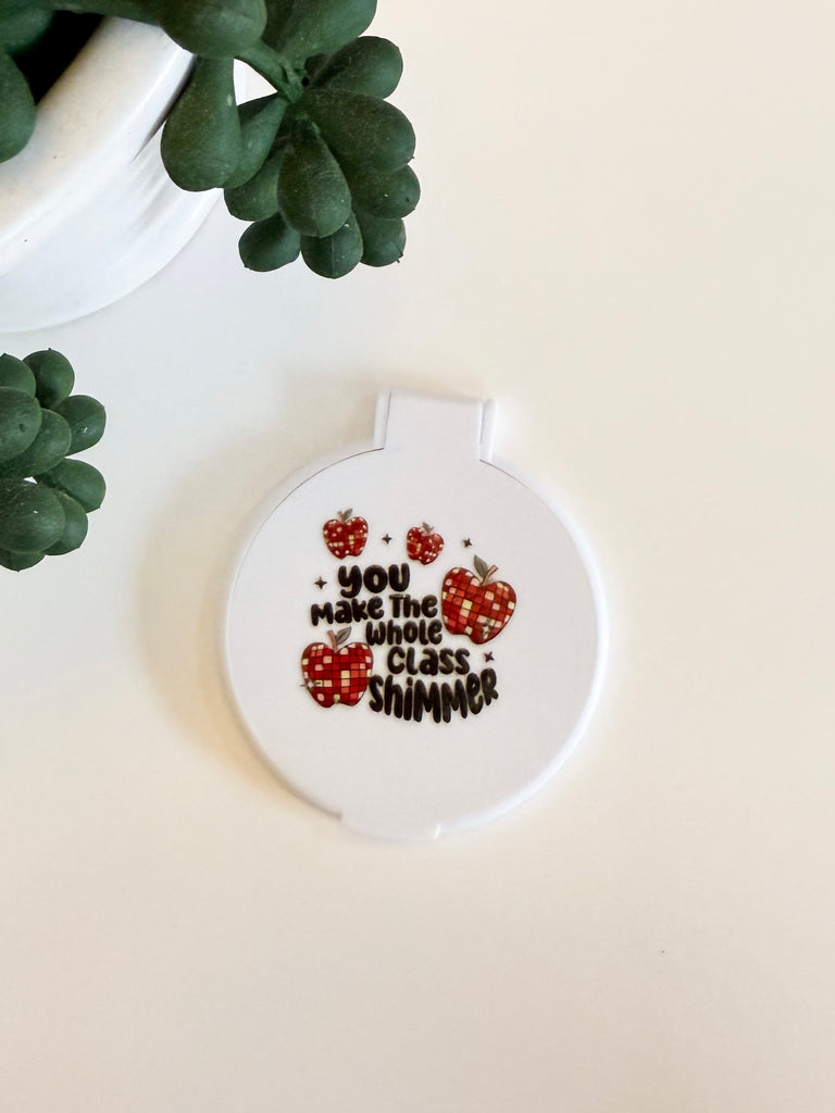 These fun and handy plastic pocket mirrors are the perfect little accessory to keep with you on the go. Each mirror is decorated with a unique decal—some playful, some encouraging, all full of personality!