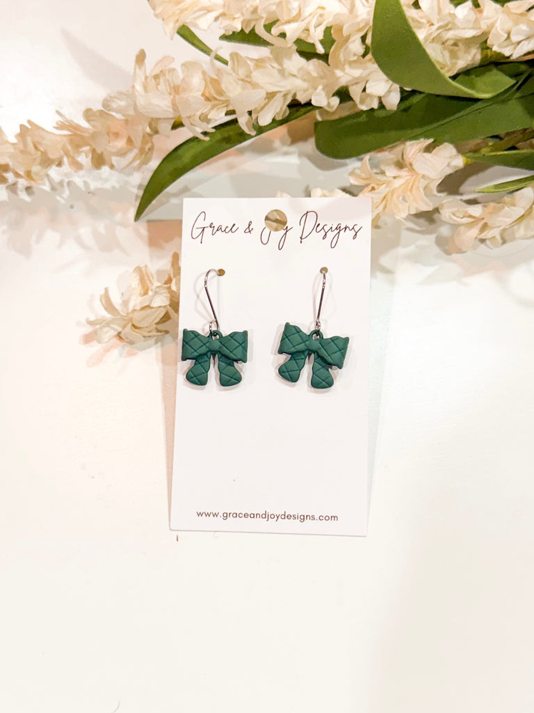 “Quilted” Green Bow Earrings